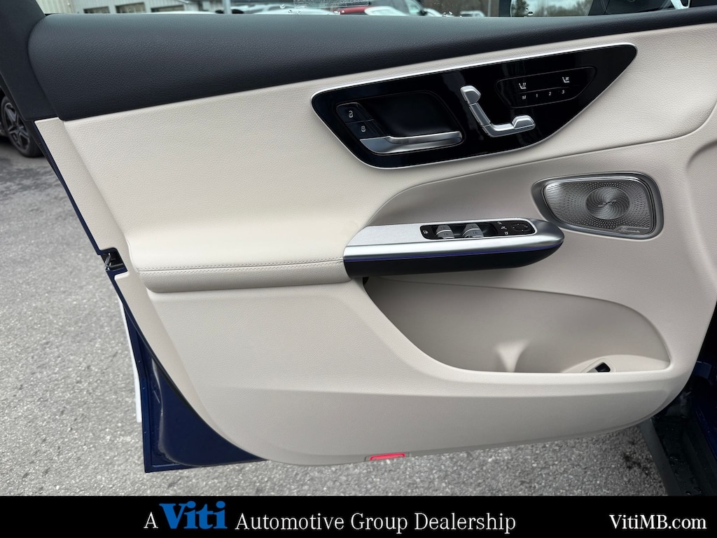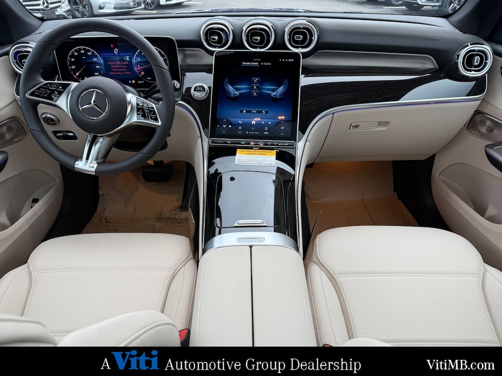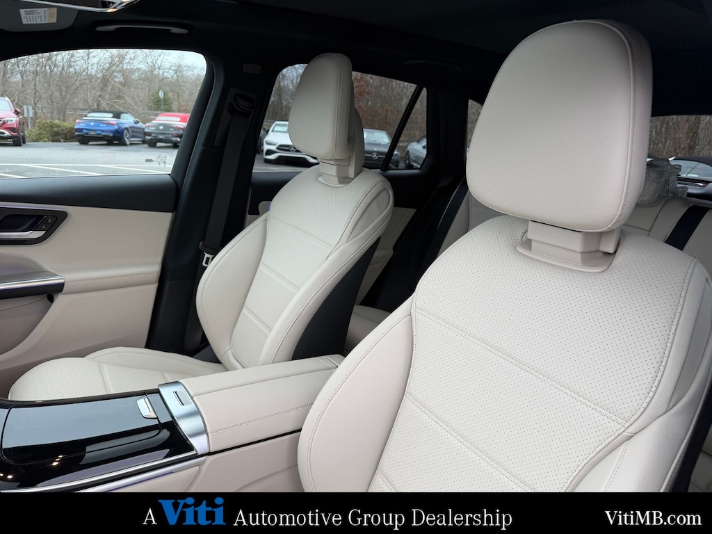 Inside, the GLC features the 3rd-generation MBUX infotainment system with a central touchscreen, voice control, and optional passenger display. Wireless Apple CarPlay and Android Auto come standard, and the available augmented reality navigation overlays directions directly onto the road view. Ambient lighting with 64 colors lets you set the mood for every drive.