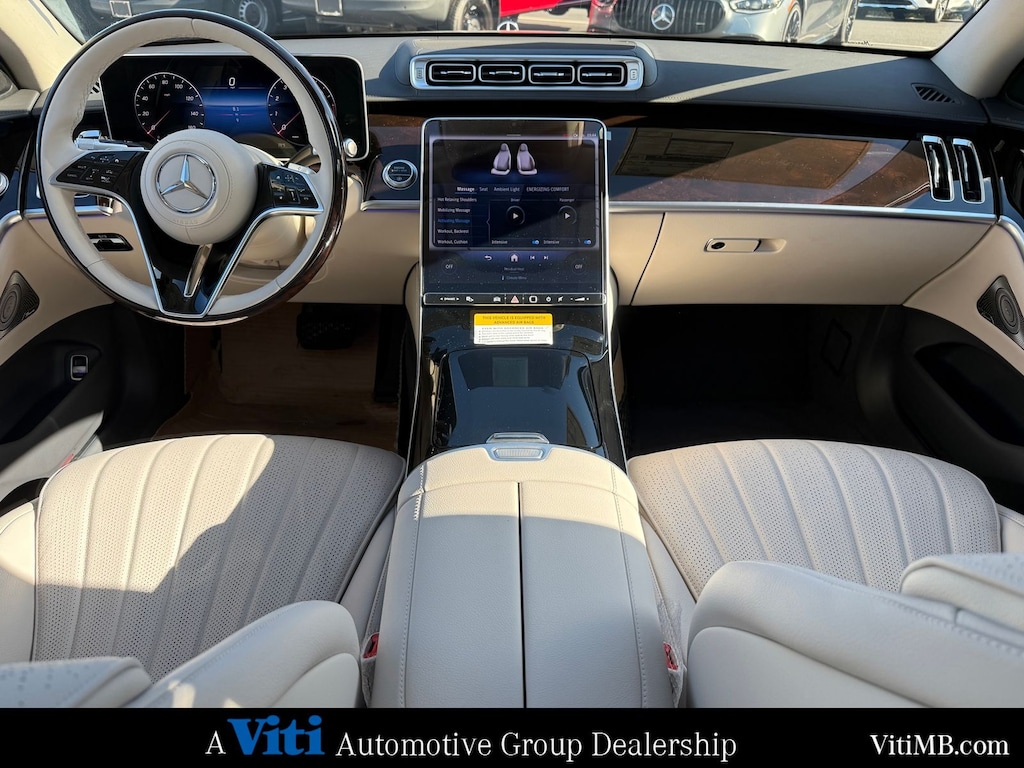 Inside, the S-Class features the latest MBUX interface with a massive OLED central display, biometric authentication, and AI-powered voice control. The optional Superscreen stretches across the dash, while augmented reality navigation and rear-seat entertainment systems make every seat the best in the house.